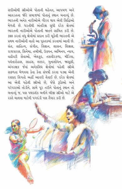 Bharatni Pratham Nario by Tina Doshi | Gujarati Articles book by Tina Doshi.ભારતની પ્રથમ નારીઓ - લેખક : ટીના દોશીવિવિધ ક્ષેત્રમાં પ્રથમ પગલું પાડનાર ભારતીય નારીઓના સંઘર્ષ અને સાહસની રોમાંચક સફર. સદીઓથી સ્ત્રીઓએ પોતાની મહેનત, આપબળ અને આવડતના જોરે સમાજમાં પોતાનું સ્થાન બનાવ્યું છે. ભારતની અનેક નારીઓએ ગૌરવ થાય એવી સિદ્ધિઓ મેળવી છે. ધરતીથી અંતરિક્ષ સુધી દરેક ક્ષેત્રમાં ભારતની નારીઓએ પોતાની જાતને સાબિત કરી છે. 180 કરતાં વધુ ક્ષેત્રોમાં પ્રદાન કરી ચૂકેલી ભારતની એ પ્રથમ નારીઓની વાતો આ પુસ્તકમાં કરવામાં આવી છે. સંત, સાહિત્ય, સંગીત, વિજ્ઞાન, શાસન, શિક્ષણ, રાજકારણ, સિનેમા, તબીબી, ઉડ્ડયન, અભિનય, ન્યાય, વહીવટી સેવાઓ, ખેલકૂદ, તસવીરકળા, મીડિયા, પર્વતારોહણ, સાહસ, લશ્કર, ગુનાશોધન, જાસૂસી, અંગરક્ષક જેવાં અનેકવિધ ક્ષેત્રોમાં પહેલી સ્ત્રીએ સફળતા મેળવવા કેવા કેવા સંઘર્ષો કરવા પડ્યા એની રસપ્રદ વિગતો અહીં આવરી લેવાઈ છે. દરેક ક્ષેત્રમાં આ એવી પહેલી સ્ત્રીઓ છે, જેણે રૂઢિઓ અને પરંપરાઓ તોડીને, સામે પૂર તરીને પોતાનું સ્થાન તો બનાવ્યું જ, પણ પથદર્શક બનીને બીજી સ્ત્રીઓ માટે એ રસ્તે ચાલવા માટેની પગદંડી પણ તૈયાર કરી છે. |
