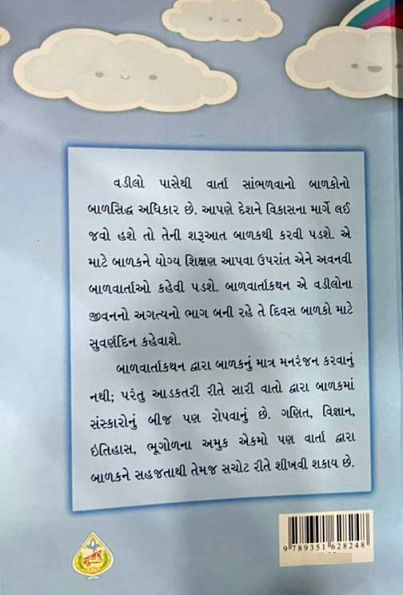 Varta Kahevani Kala by Natvar Patel | Gujarati book about art of storytelling.વાર્તા કહેવાની કળા - લેખક : નટવર પટેલઆપણા દાદા-દાદી જે સરળતાથી વાર્તાઓ કહી શકતા હતા એ મહામુલી વિરાસત હવે ભુલાઈ રહી છે. વાર્તા કહેવી એક કળા છે. અને આજ કળા જે આપણા વડીલો માટે એકદમ આસાન હતું તે આજના જમાના માં પૈસા આપીને શીખાવમાં માં આવે છે ! વડીલો પાસેથી વાર્તા સાંભળવાનો બાળકોનો બાળસિદ્ધ અધિકાર છે. આપણે દેશને વિકાસના માર્ગે લઈ જવો હશે તો તેની શરૂઆત બાળકથી કરવી પડશે. એ માટે બાળકને યોગ્ય શિક્ષણ આપવા ઉપરાંત એને અવનવી બાળવાર્તાઓ કહેવી પડશે. |