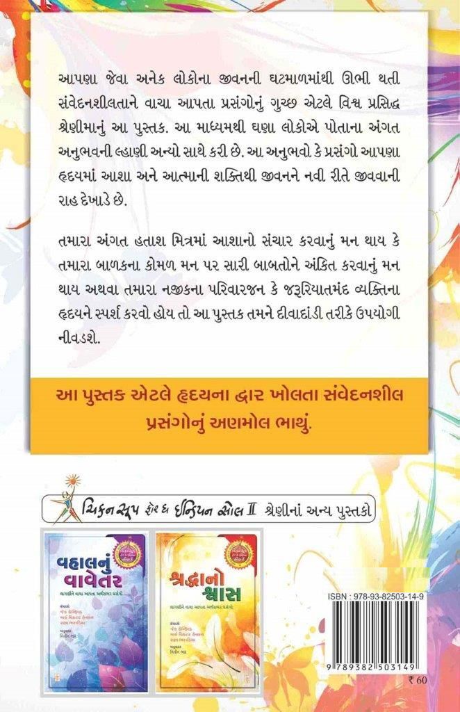 સ્પર્શની સુગંધ - લાગણીને વાચા આપતા અર્થસભર પ્રસંગો. નેશનલ બેસ્ટસેલ્લર - "ચિકન સૂપ ફોર ધ ઇન્ડિયન સોલ" - લેખકો: જેક કેન્ફિલ્ડ, માર્ક વિક્ટર હેન્સન, રક્ષા ભરાડિયા. ગુજરાતી અનુવાદ: નીતિન ભટ્ટ। દ્વારા. Sparshni Sugandh - Originally written by Jack Kenfield, Mark Victor Hensen, Raksha Bharadiya - "Chicken Soup For The Soul II" - one of the bestseller books is now translated in Gujarati by Nitin Bhatt. |